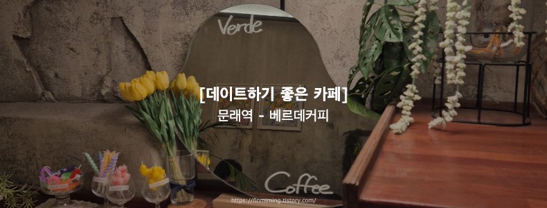 문래역 1번출구에서 걸어서 10분 거리에 있는 대형카페 베르데커피입니다.