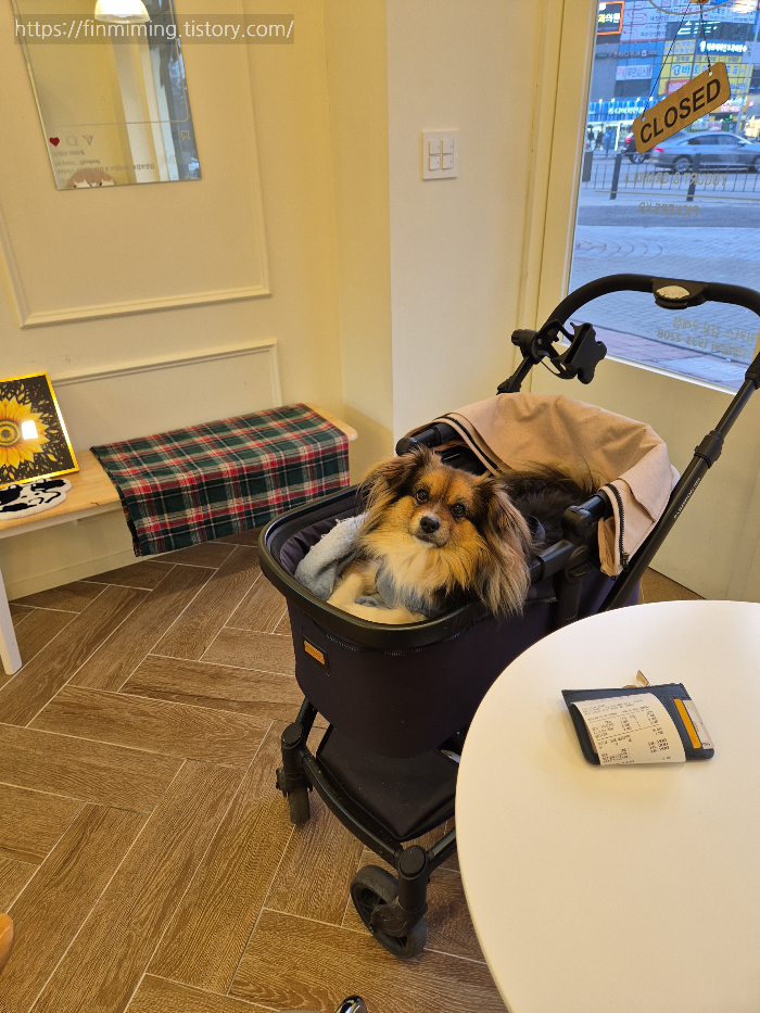반려동반카페라서 카페 안에서 강아지랑 따듯하게 기다릴 수 있었어요.